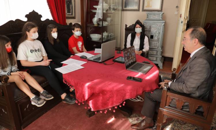 Edirne Belediye Başkanı Recep Gürkan, tüm çocuklara Edirne Belediye Meclis Üyesi ve Balkan Masası Sorumlusu Filiz Gencan Akın ve Edirneli çocuklar ile birlikte Atatürk Odası’ndan seslendi.