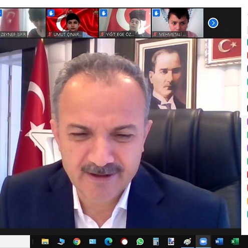 Belediye Başkanımız Dr. Süleyman Kılınç, geçen yıl olduğu gibi bu yılda pandemiden dolayı 23 Nisan Ulusal Egemenlik ve Çocuk Bayramı’nı evlerinde kutlamak zorunda kalan minik öğrencilerle telekonferans yoluyla bir araya geldi.