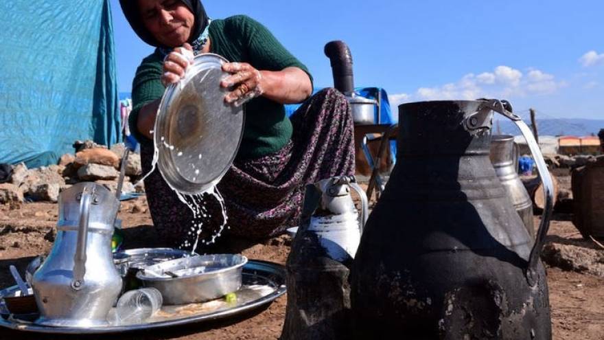 Gün doğmadan uyandıklarını, hayvanlara yem ve su verdikten sonra ailece kahvaltı sofrasına oturduklarını anlatan Hayriye Duman, odun ateşinde ısıtılan su ile bulaşık ve çamaşır yıkıyor.